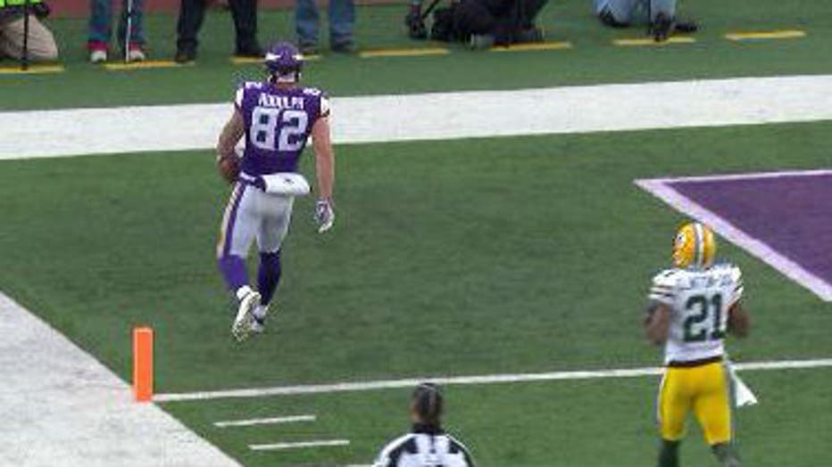 Two plays later, the Vikings scored on a 47-yard, play-action pass from Teddy Bridgewater to Kyle Rudolph.