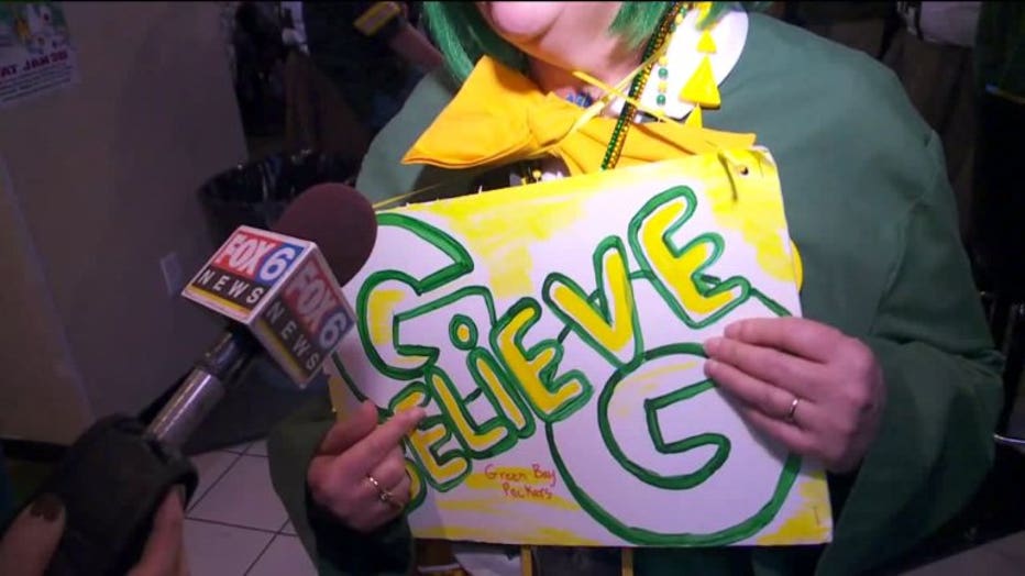 "This is what I'm feeling right now," a fan said as they referenced a sign reading 'Believe.' "I mean, it's 17-0 but the Pack will come back."