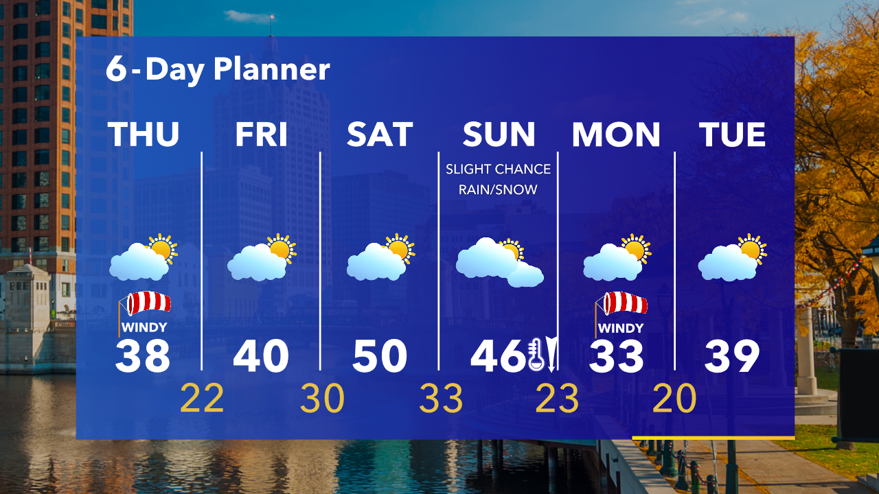 Cold overnight with temperatures in the 20s and wind chills around 15-20 by sunrise. Increasing clouds on Thursday, windy and cold with highs in the 30s and wind chills in the 20s.