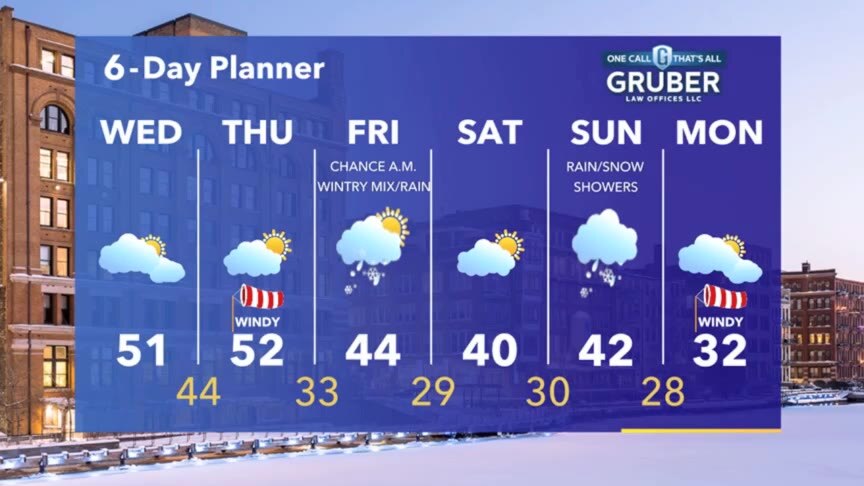Cloudy but mild today then sunshine returns Thursday. Another chance for wintry mix and rain Friday morning, then again on Sunday