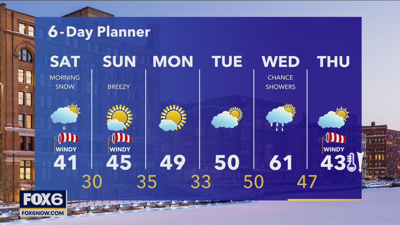 A quick round of morning snow and gusty winds will give many at least a dusting to ½" as this system passes through. By the afternoon we start seeing breaks of sun.