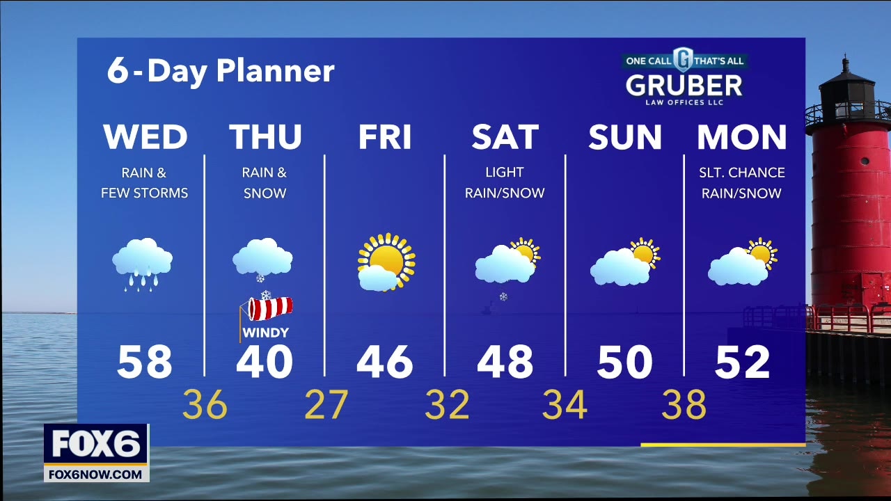 Rain continues with a chance for thunderstorms today. Mild highs in the upper 50s likely but feeling colder with a strong SE wind 10-20 mph gusting into the 30 mph range.