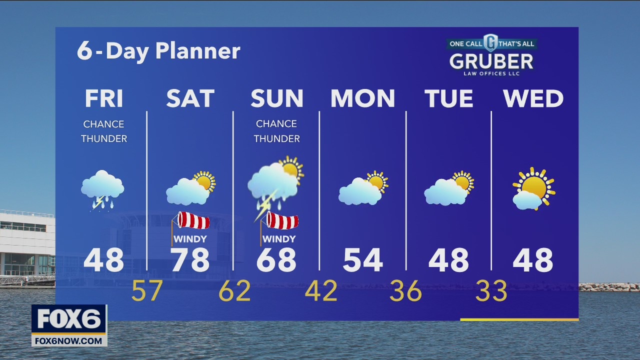 A strong warm front moves our way today. Ahead of that front, we will get light rain and a chance for thunderstorms. Today's highs will be in the upper 40s. Behind that warm front tomorrow, we dry up and warm up into the upper 70s! The wind will shift from the southeast today to the south and southwest tomorrow and increase from 10-15mph today to 15-25mph tomorrow with stronger gusts.