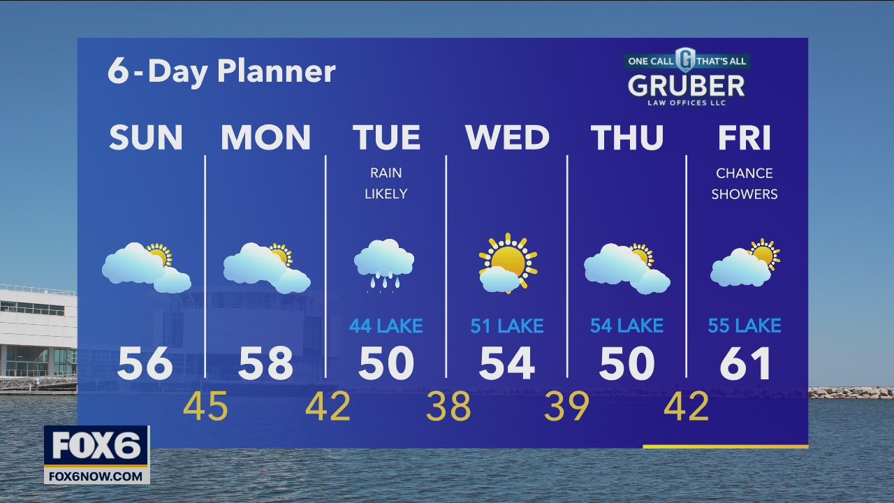 Mostly cloudy and cool today with highs in the mid to upper 50s. Low chance of an isolated shower. Dry Monday but rain returns Tuesday with plenty of rain chances.