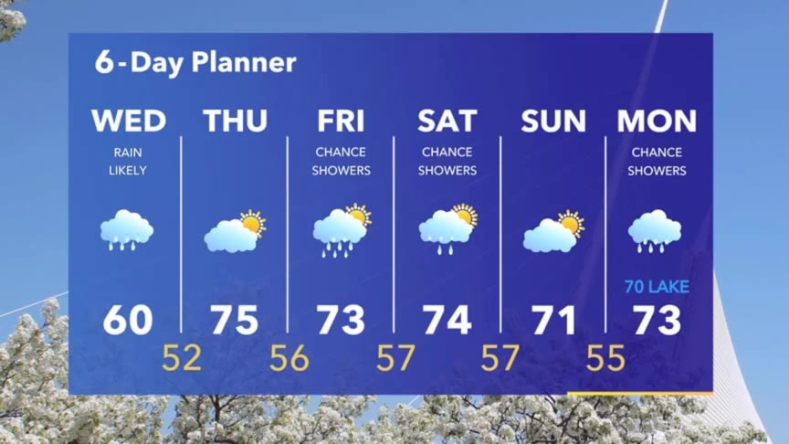 Steady rain will taper off later this afternoon then sunny and mild on Thursday. Slight chance for showers and t-storms Friday into the weekend.