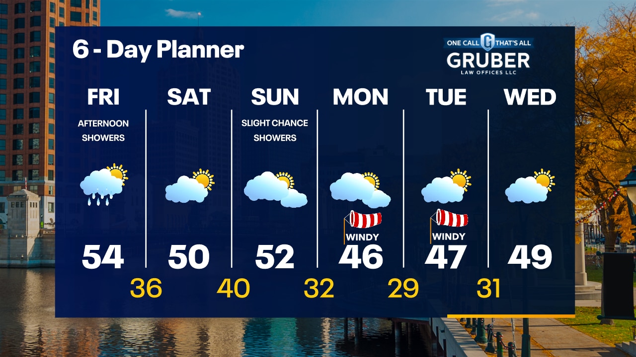 Scattered showers ending this evening. Frost Advisory overnight. Temperatures dropping into the low 30s by sunrise. Afternoon scattered rain showers on Friday with highs in the low-to-mid 50s.