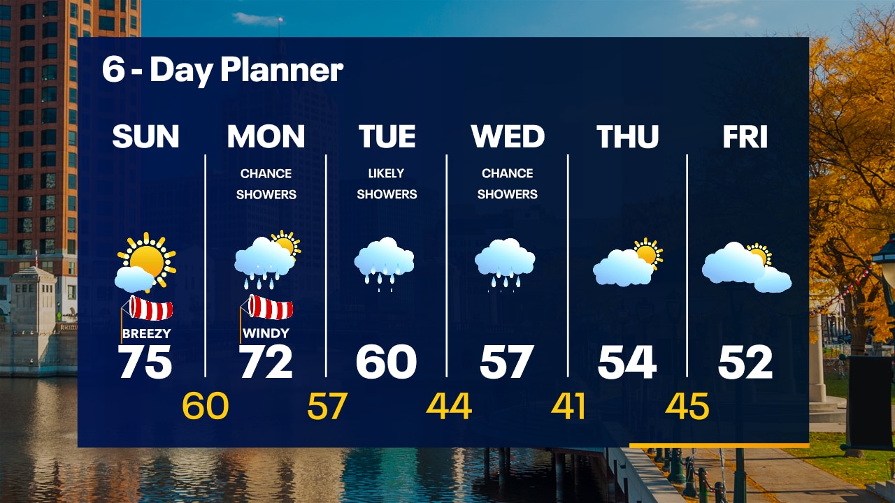 Sunny and warm through Sunday but rain chances return Monday and Tuesday. Cooler air to go with it!
