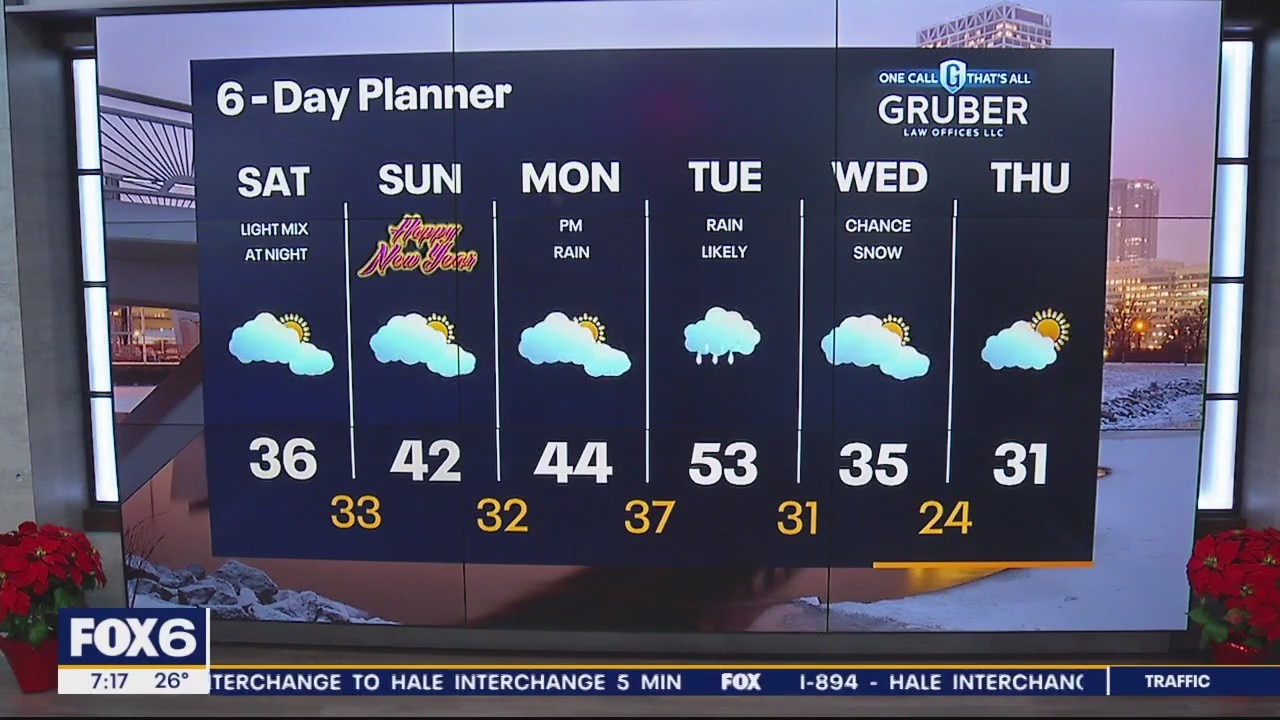 A cooler and frosty start to the weekend with temperatures in the middle 20s. Mostly cloudy to cloudy skies today. Temperatures a few degrees above average in the middle 30s. Chance for rain/snow mix and possible light freezing rain this afternoon into tonight for areas north. Rain enters late Monday night into Tuesday with another chance at seeing the 50s Tuesday afternoon.