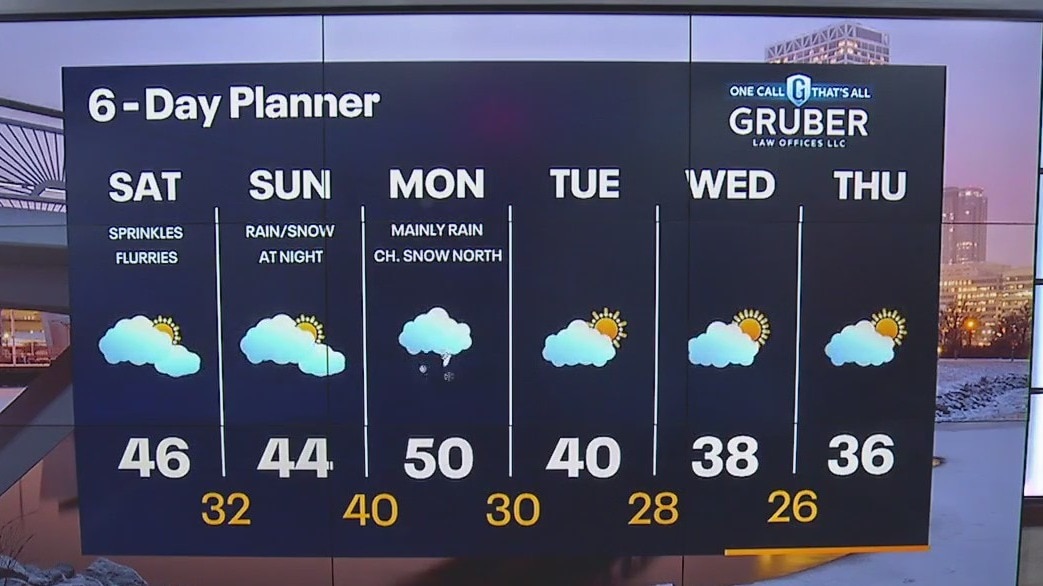 Freezing fog & frosty conditions start Saturday. Brief sunshine before clouds increase through the day. Warmer temperatures by the afternoon. Isolated showers/drizzle with flurries possible north. Dry through most of Sunday, but rain/snow chances increase Sunday night into early Monday. Cooler temperatures welcome the second week of March in the 30s.
