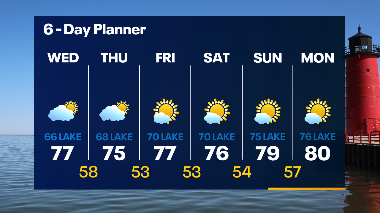 The rain has tapered off but patchy fog is possible overnight. Temperatures will drop through the 50s overnight. Morning clouds and afternoon sun on Wednesday. 70s inland, 60s near the lake.