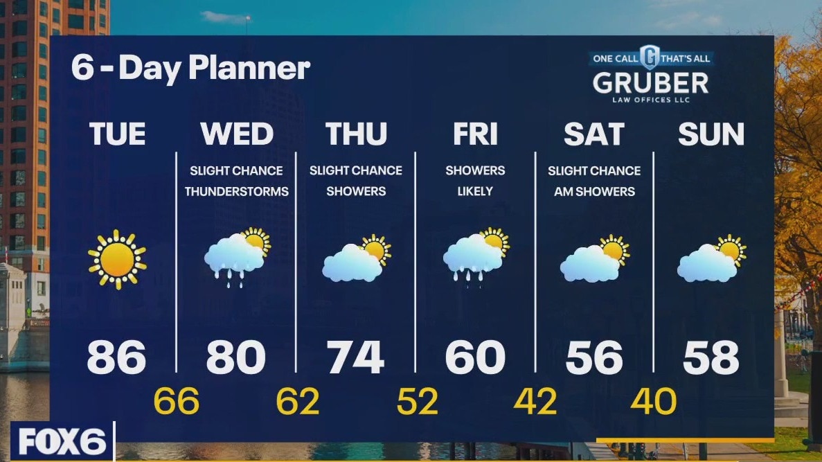 A strong area of high pressure to our east continues to control our forecast keeping us clear and warm. After some patchy morning fog, we will see sunny conditions with highs warming into the mid 80s today. An approaching cold front brings a chance for rain and thunderstorms tomorrow, but we stay ahead of the front long enough to once again reach the 80s. After the front passes, we cool to the 70s Thursday and continue to cool into the 50s by the weekend.