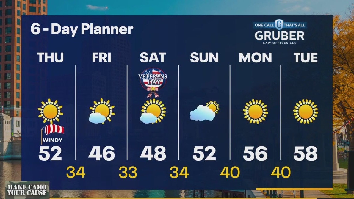 A very tight pressure gradient between a low over the lower lakes and a strong high to our west means strong west winds for our area. Gusts will hit 40mph at times today but should calm overnight. We should still hit the low 50s today but cool to the 40s Friday and Saturday before starting a long range warm up. We stay dry through Tuesday with highs pushing into the upper 50s.