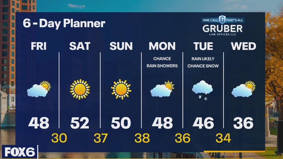 A cold front will clear our area early this morning. As it passes, we may see a few rain sprinkles. Behind the front we will clear rapidly and get back to sunshine but without the heat of recent days. Highs will be in the upper 40s. We will spend the weekend under high pressure with some sun and low 50s.