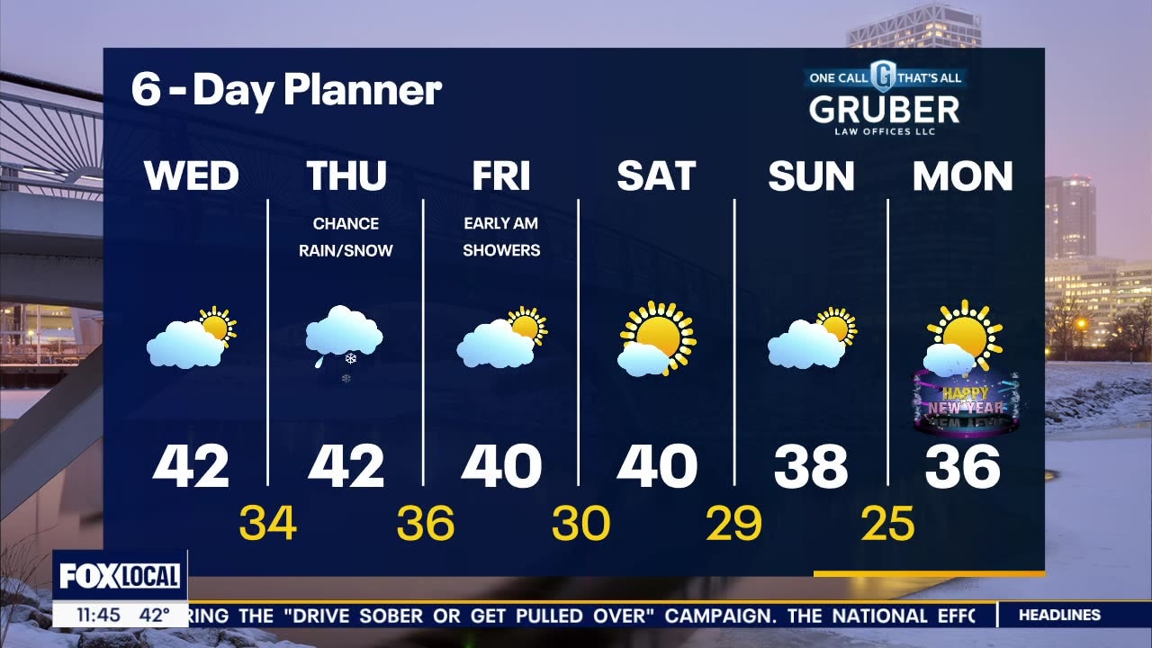 Clouds stay tonight bringing the chance of rain/snow early Thursday into Friday morning. Very minor accumulation possible inland with most areas not seeing any accumulation. Low visibility and slick spots in the early morning and night are possible. High temps remain in the upper 30s to lower 40s this week. Cooler air arrives by early next week welcoming in the new year, although we still remain above the seasonal averages.