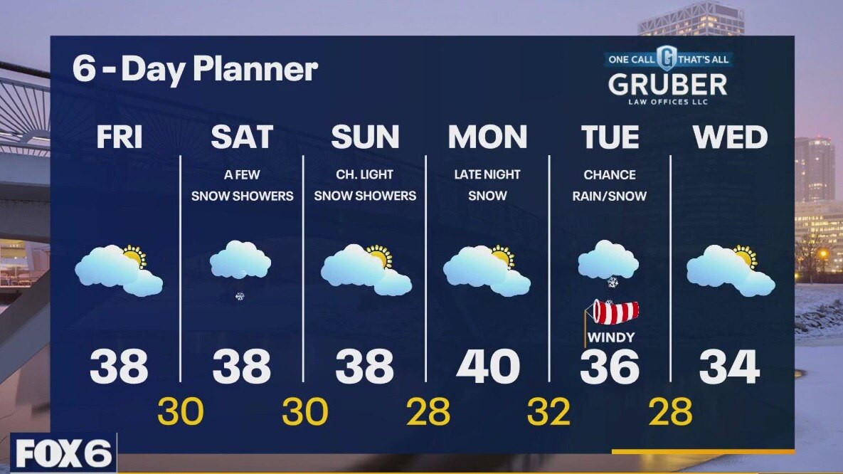 A southwest wind today will bring warmer and slightly more moist air to our region. Highs will warm a bit to the upper 30s and dewpoints will climb. We should stay dry today but a disturbance arrives Saturday with a chance for light snow. A few tenths of an inch are likely. Temperatures remain above average this weekend with highs in the upper 30s to near 40 but cooler air arrives by the mid to late part of next week.
