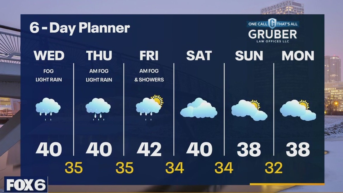 Warm, moist air continues to push into our area today and that combined with melting snow is creating a dense fog in many areas. A Dense Fog Advisory is in effect until 10am. A area of light rain moves over us later this morning and through the afternoon. A few showers are possible even overnight into Thursday morning. Highs today will warm to near 40 and we stay well into the 30s overnight and return to near 40 Thursday. A steady light rain returns by Thursday afternoon and light showers are possible into Friday morning. We should dry up for a few days after that.