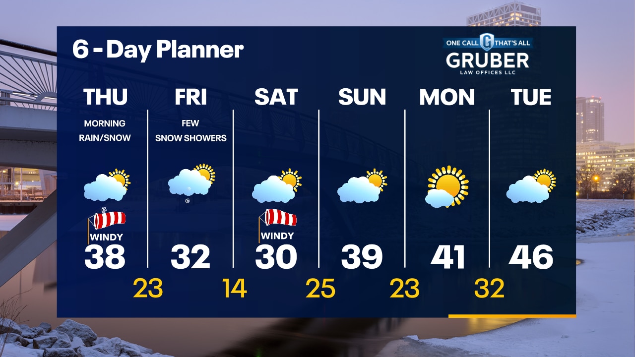 Winter Weather Advisory north of Milwaukee overnight. A few inches of snow overnight in Milwaukee, 2-5" of heavy/wet snow north of the city. A messy AM commute possible.