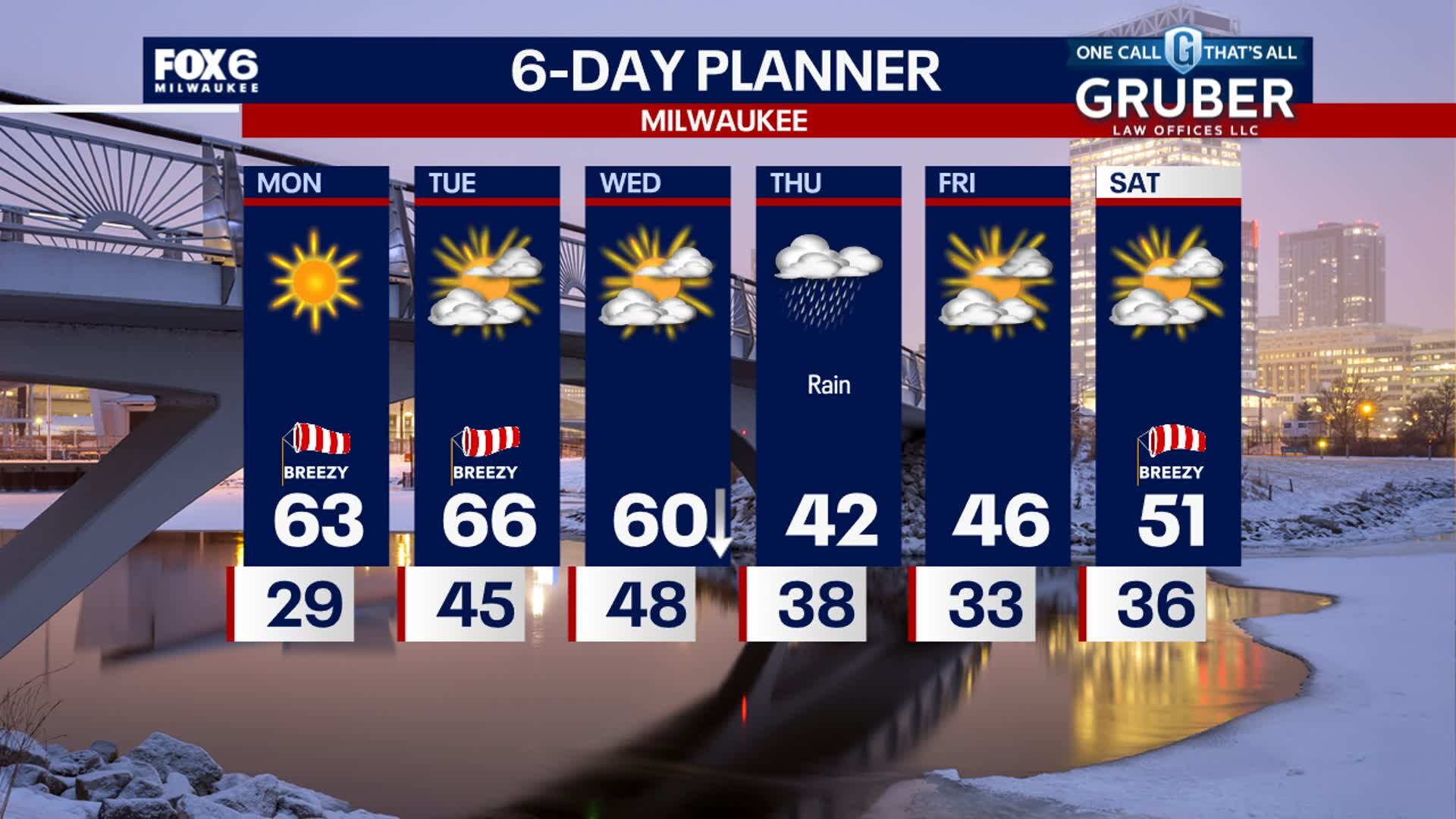 Sunny, windy and warm to start the work week then dropping temperatures on Wednesday as a cold front moves through. Rainy and chilly Thursday.