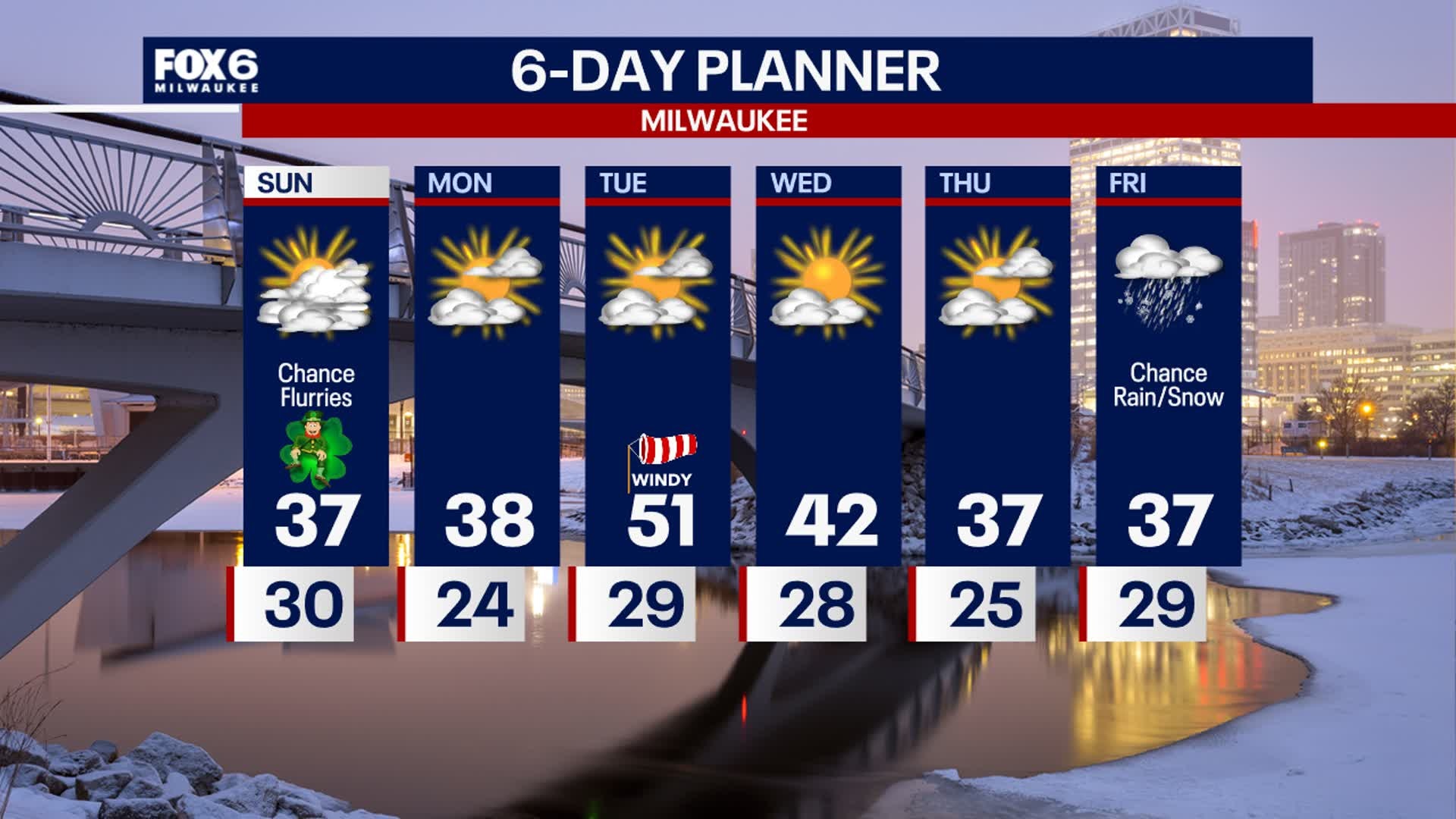 Northwesterly winds drag in the cold temps tonight into Sunday. Mostly cloudy skies Sunday with highs in the mid to upper 30s. Wind chills remain in the upper 20s. There is a slight chance for a few flurries Sunday and again Monday as we remain cool. A slight warm up on Tuesday. Watching a system for rain/snow by the end of the week.