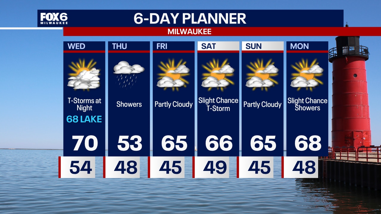 Much quieter on Wednesday with partly to mostly cloudy skies. Highs in the upper 60s to low 70s, cooling near the lake in the afternoon. Showers and non-severe thunderstorms Wednesday night.
