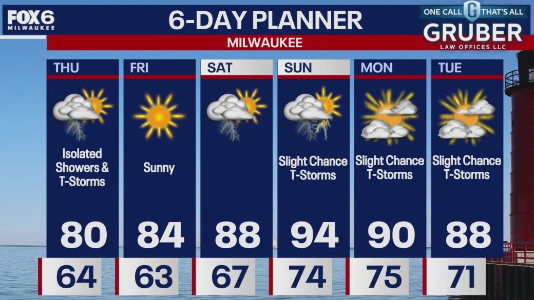 Partly sunny today with just a slight chance for a few isolated showers. Highs will be a little below average - particularly near Lake Michigan. A few clouds overnight leading into a sunny and dry day for Friday.
