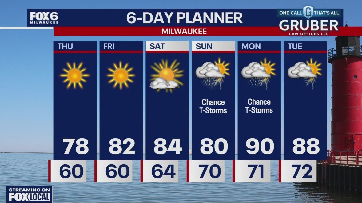High pressure dominates our forecast today with sunny conditions but cooler than average temperatures. Highs will be in the mid to upper 70s inland and low 70s lakeside again today.