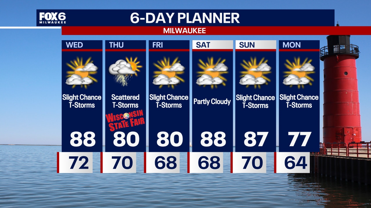 Humid overnight with patchy fog and temperatures in the 70s. Morning clouds and afternoon sun on Wednesday. Slight chance for a t-storm. Warm and humid with highs in the upper 80s.