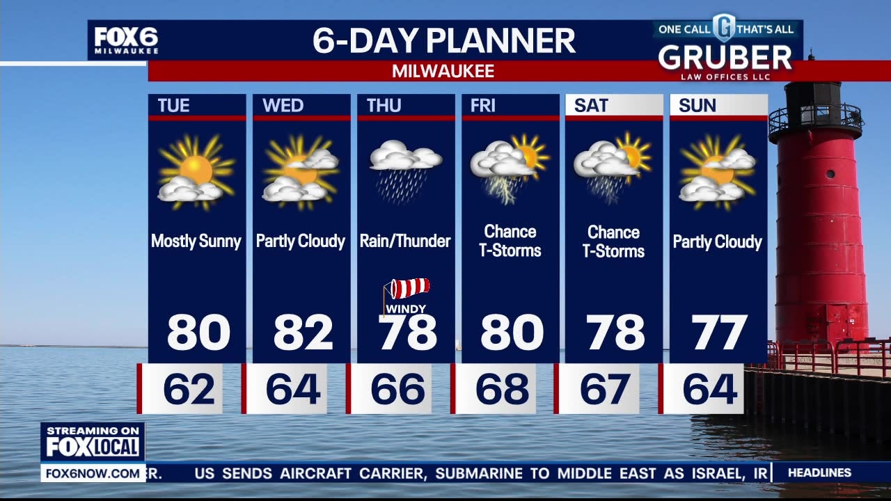 An isolated shower this afternoon/evening. Otherwise, mostly clear with lows in the low 60s. More seasonable temps this week in the low 80s. High pressure keeps us dry for the first half of the week through Wednesday. We are mostly dry today through Wednesday afternoon but then enter a soggy period from Wednesday night through the weekend. We could see 1.5 - 2.0 inches of rain over a few days later this week.