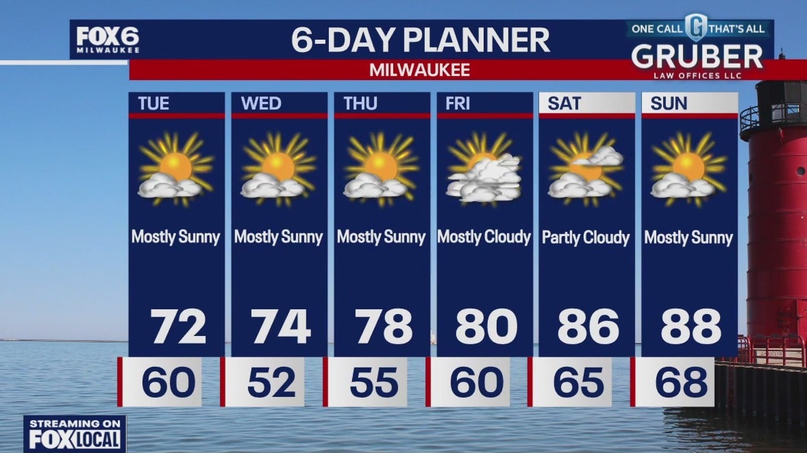 High pressure dominates our forecast for the next few days giving us ample sun and dry conditions. Temperatures will be a bit cool today with highs in the low 70s and upper 60s lakeside.