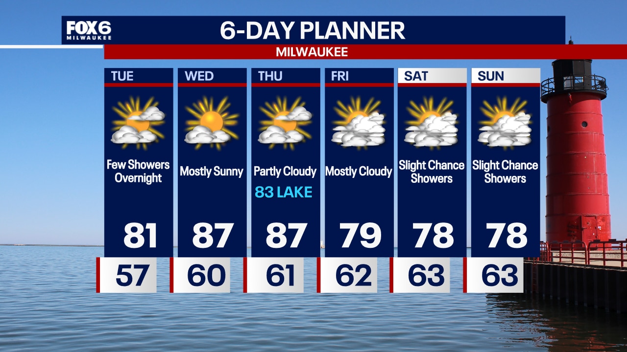 Clear skies overnight with temperatures in the 50s by sunrise. Mostly sunny, breezy and warm again on Tuesday with highs in the low 80s.