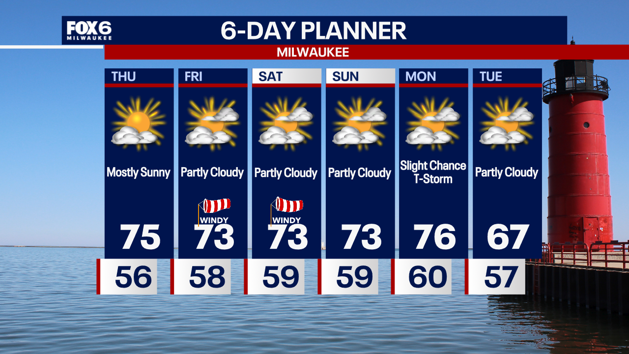 Mostly clear overnight with temperatures in the 50s. Mostly sunny on Thursday with highs in the 70s.