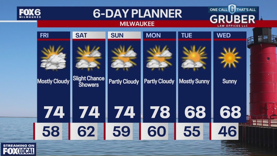 As what remains of tropical system Helene moves closer today, our wind will ramp up with gusts near 30mph at times. With that strong NE wind staying steady through today into tomorrow we can expect rough conditions on Lake Michigan. There is a Beach Hazards Statement in effect. We should stay dry today but there is a slight chance for showers on Saturday into early Sunday morning with the most likely areas being the far southeast counties. A brief cool down next week to usher in October but otherwise well above average temperatures persist.