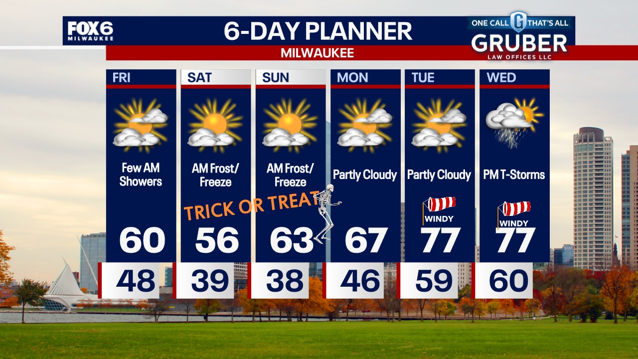 Rain and a few rumbles from 11pm-8am. 0.25"-0.50" of rain possible. Gradual clearing on Friday. Breezy with highs around 60.