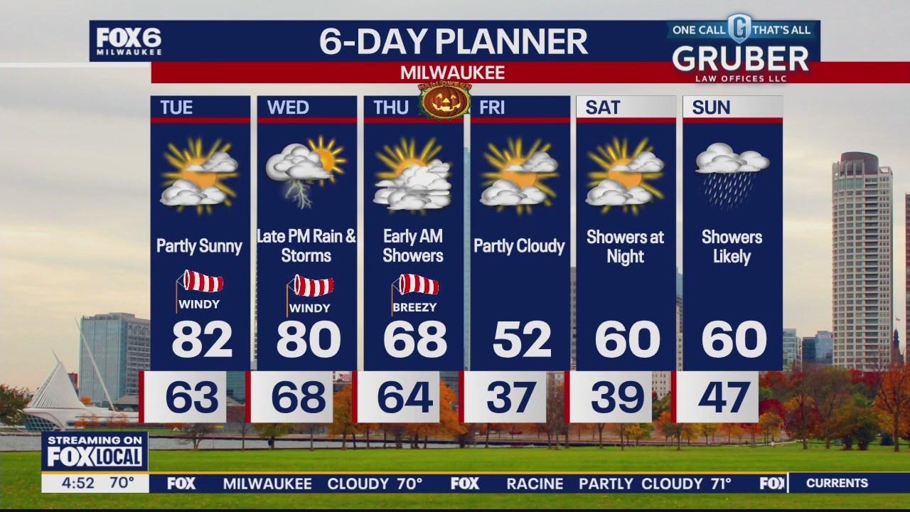 Another windy and warm day with a steady wind from the southwest helping to deliver some very summer-like air. Highs today will reach the low 80s and could meet or beat the record high for the date. Highs will again be near 80 tomorrow.