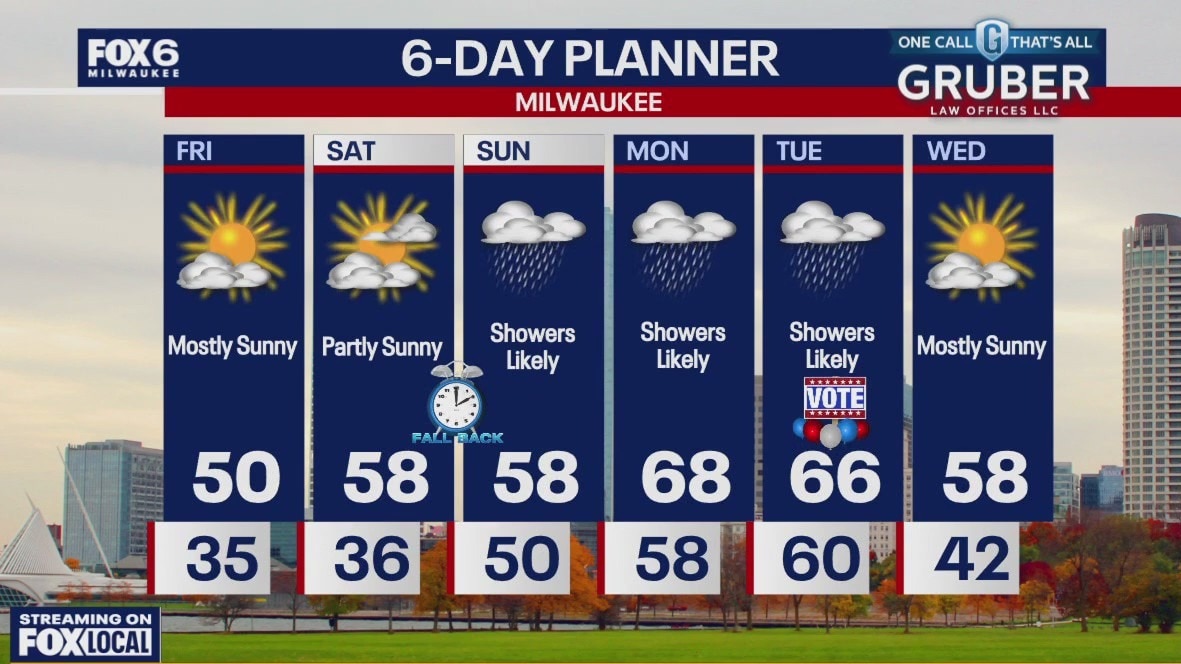 Much colder today behind yesterday's passing cold front. High pressure builds back into the area to calm the wind and clear the sky. Sunny but chilly highs today near 50 and falling into the 30s overnight. We warm up a bit on Saturday with upper 50s likely and then warm well into the 60s early next week. Rain returns to the area Saturday night and we expect several rounds of showers and possible thunderstorms through later Tuesday.