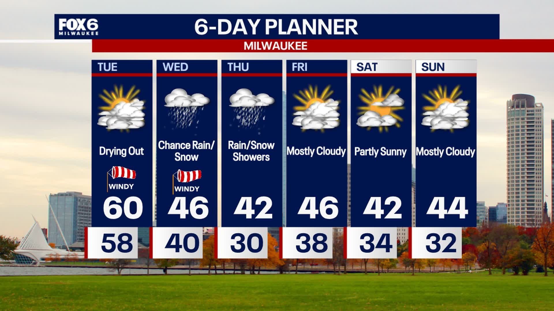 Drying out but staying windy this afternoon, then showers return Wednesday morning. There is a chance for scattered rain/snow in the afternoon and it'll be much cooler in the middle 40s. Lows drop below freezing Thursday morning with a chance for slushy snow, which will then change over to rain in the afternoon. Finally drying out Friday but staying seasonably cool in the 40s for the foreseeable future.