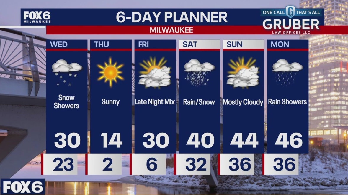A few flurries this morning with a few more snow showers later today. Highs will be near 30 today but much colder air arrives later today and we fall to near zero overnight. Wind speeds ramp up later today with gusts exceeding 30mph creating wind chills in the -10 to -20 range overnight into Thursday morning. Sunny and cold Thursday but we warm up Friday and into the weekend.