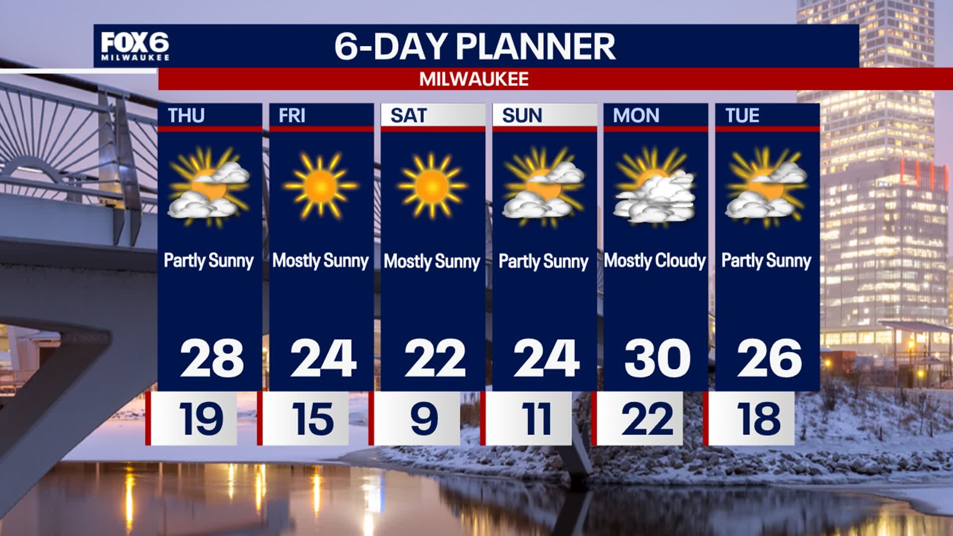 A few more clouds this afternoon thanks to snow passing south of us in IL. Temperatures remain in the middle and upper 20s. Dropping into the teens tonight then only low 20s Friday afternoon, but expect more sunshine. Similar conditions ahead this weekend.