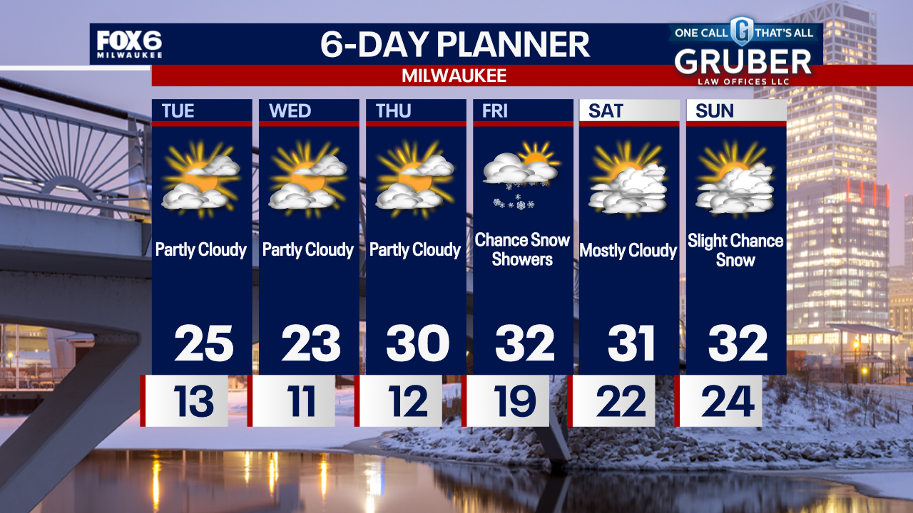 Clearing skies tonight with temperatures dropping into the teens overnight. Increasing clouds on Tuesday with highs in the low-to-mid 20s.