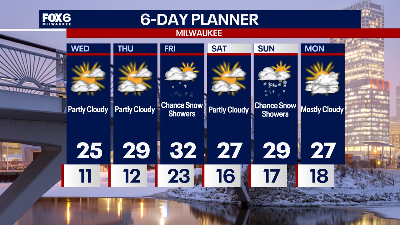 Cold overnight with temperatures in the teens near the lake and single digits inland. Partly sunny on Wednesday with highs in the 20s. Our next chance for snow is on Friday.