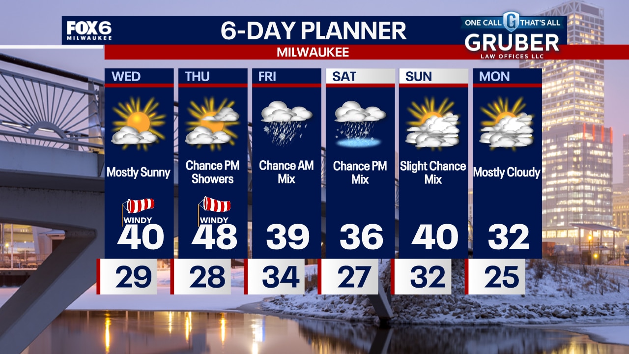 It will stay windy tonight with temperatures dropping through the 30s. Mostly sunny and windy again on Wednesday with a high around 40.