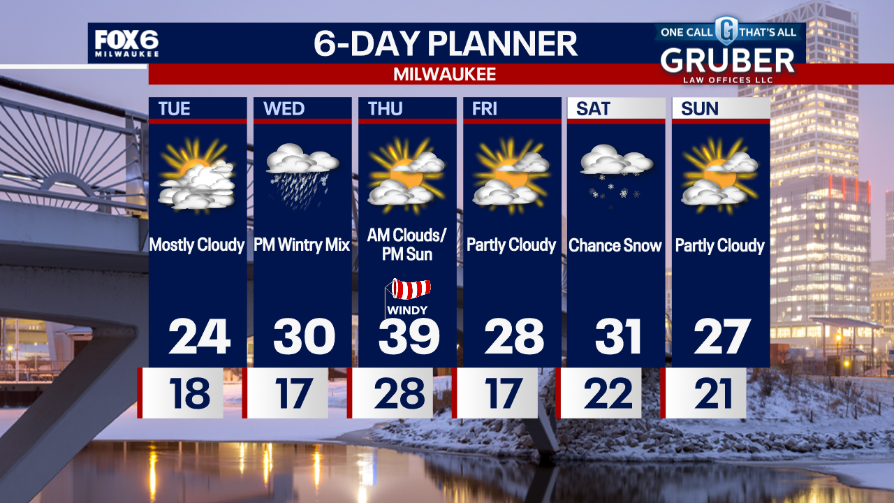 Chilly tonight with temperatures dropping into the teens overnight. Mostly cloudy, blustery and cool on Tuesday. Highs in the low-to-mid 20s. A wintry mix is possible Wednesday night.