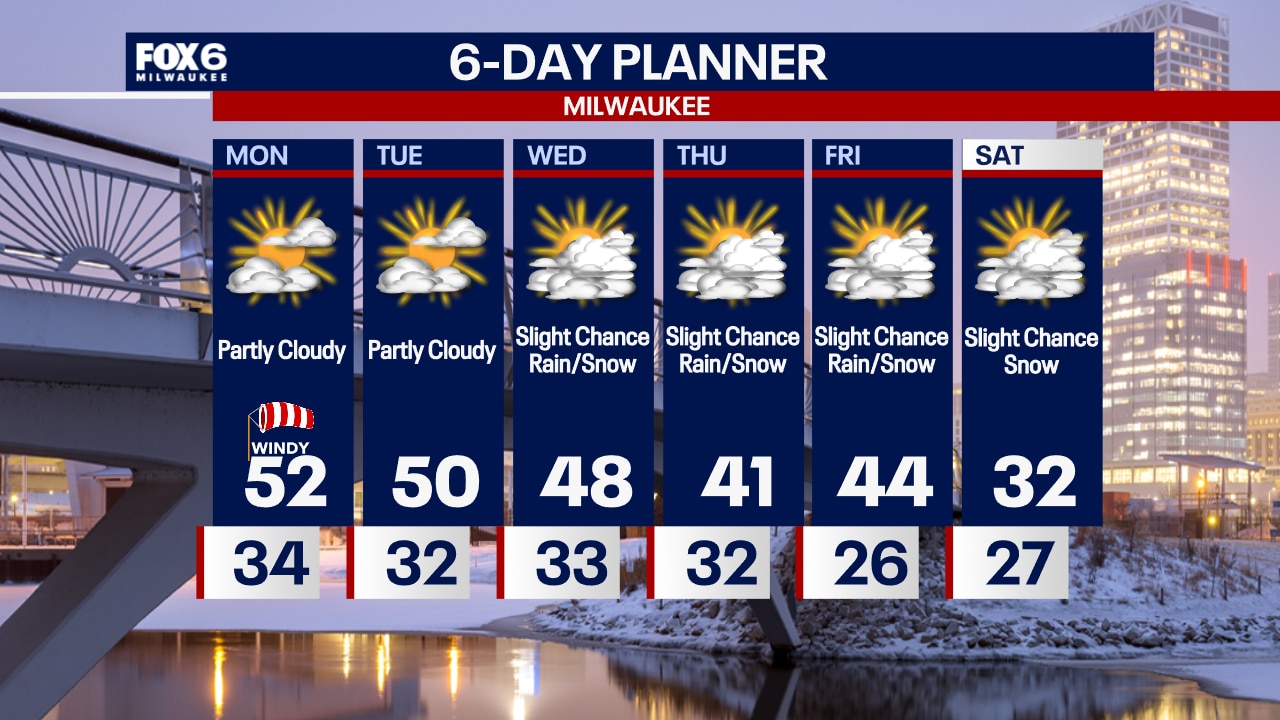 Increasing clouds overnight with temperatures holding steady in the 30s. Partly to mostly cloudy, windy and warm on Monday with highs in the upper 40s to low 50s.