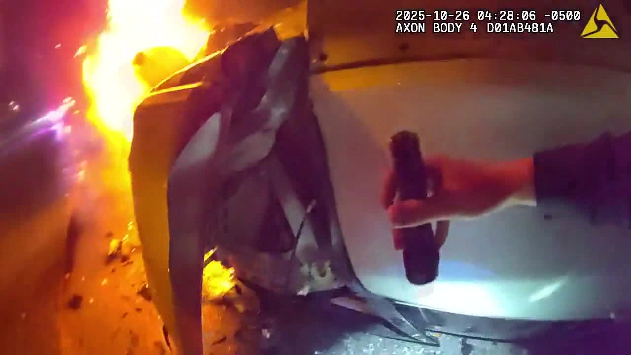Milwaukee County Sheriff's deputies rescue a pregnant woman, pulling her from her burning vehicle after a wrong-way crash on I-43. Her unborn child would later die. NOTE: The video is censored, but viewer discretion is still advised.