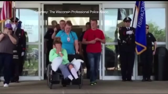 Emotional video shows Appleton officer`s release from hospital after she was shot during struggle with suspect
