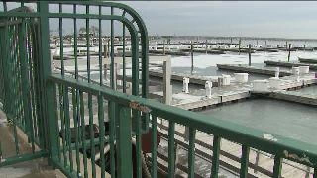 Fisherman breaks through ice at McKinley Marina