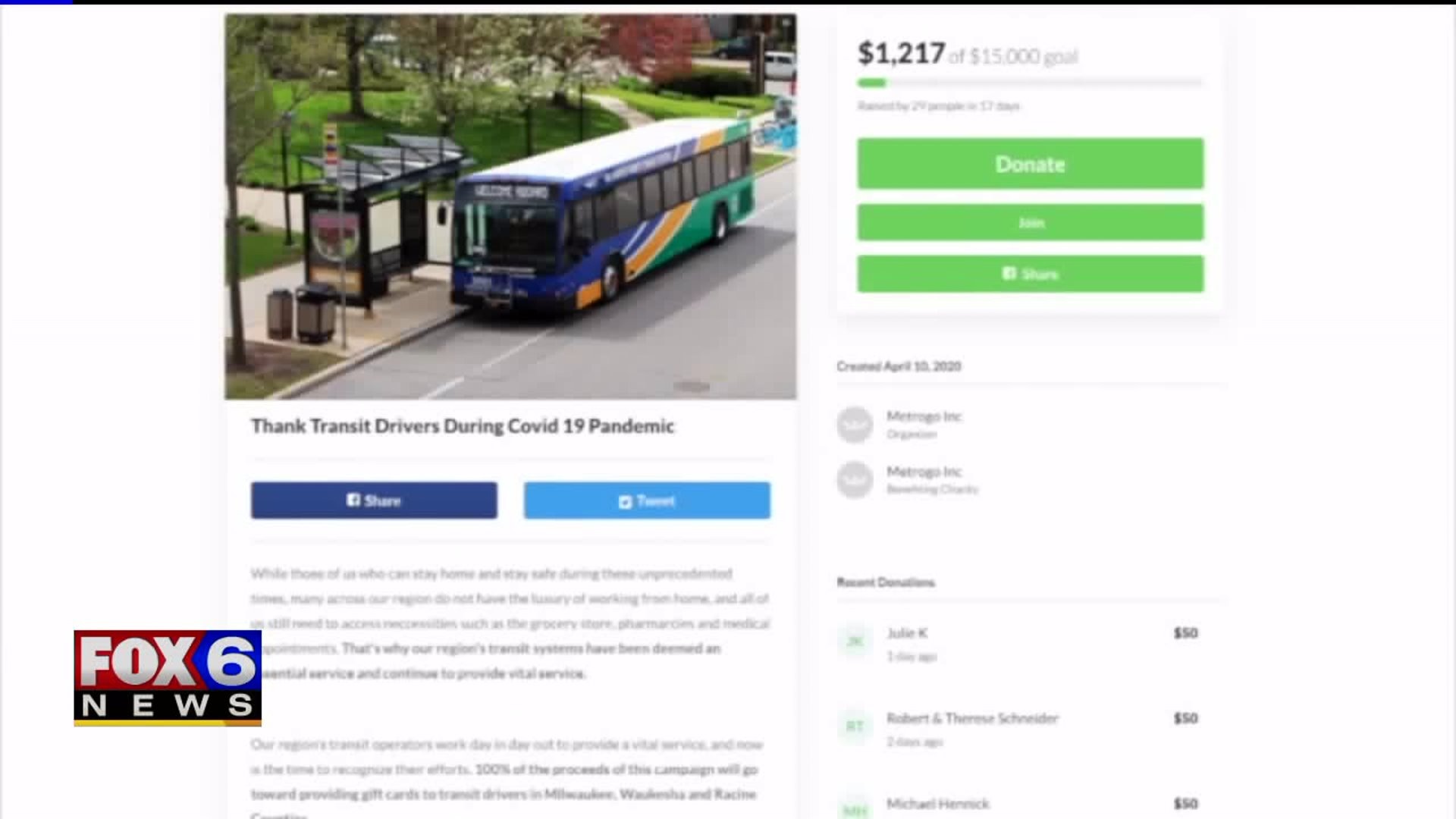 GoFundMe campaign launched to help thank transit drivers
