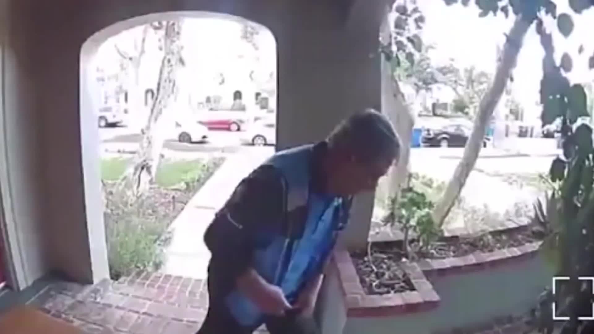 Amazon driver spits on package (Courtesy: KTTV)