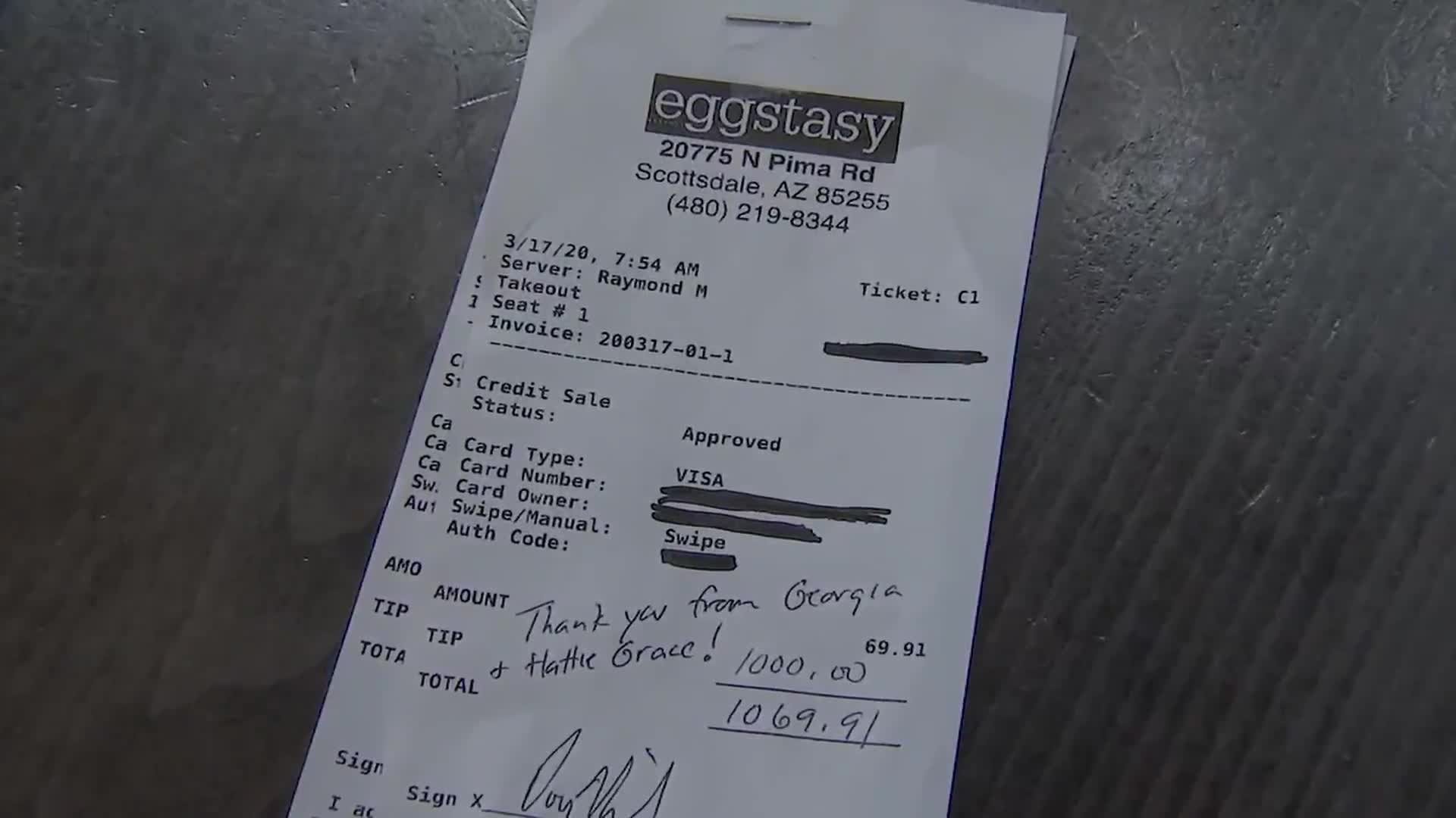 Customer leaves server $1,000 tip