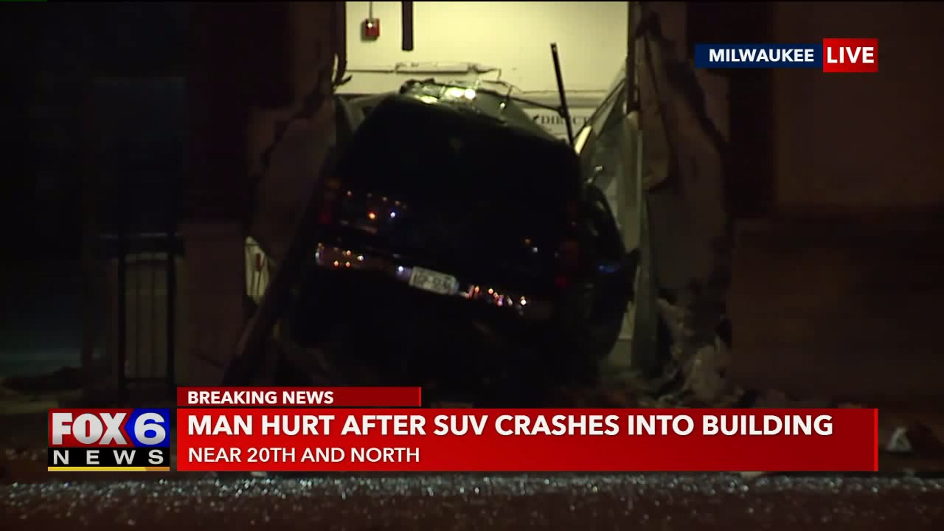 Driver hurt after SUV struck building near 20th and North
